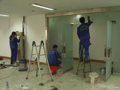 疊成方塊,從門的頂部開始從左到右的擦拭,不能有遺漏,有膠漬的地方可用除膠劑做處理;框的程序同門;一定要做到無遺漏、無死角。